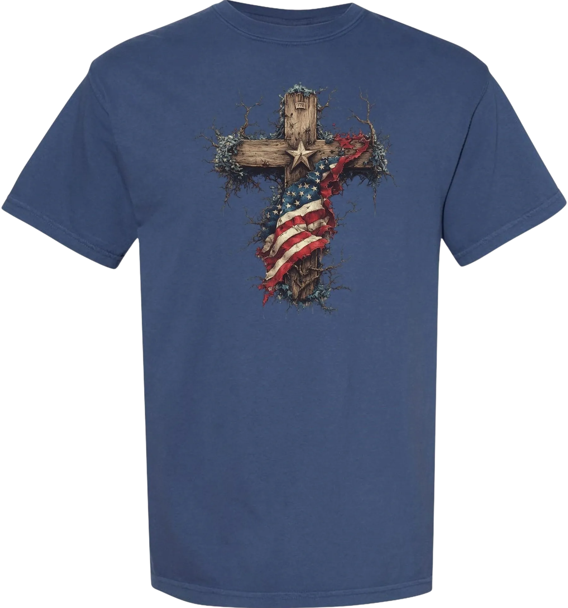 A testament to people that The United States of America has been under God since it's conception. Available in two colors Denim and Blue Jean garment-dyed for that lived in feel and almost no shrinkage at home. Soft ring-spun cotton fabric with 100% cotton threads. Relaxed fit.